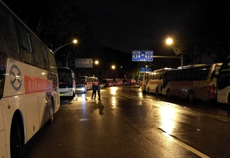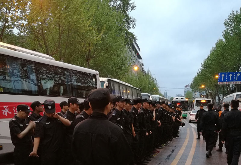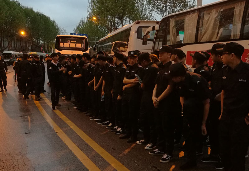 -4月8日22:15,500名臨時(shí)保衛(wèi)人員已在17輛大巴車上待命-